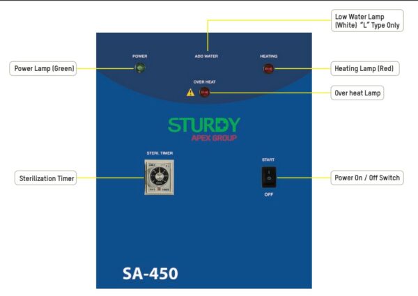 Buồng hấp tiệt trùng SA-500 Sturdy có cả phiên bản “Thủ công” (SA), yêu cầu một số thao tác thủ công, và phiên bản “Tự động” (SA-A), hoàn toàn tự động sau khi khởi động.