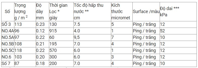 - Tốc độ lọc: Trung bình đến chậm (thời gian chảy khoảng 300 giây).