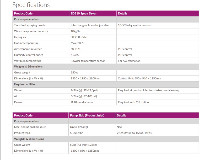 Hệ thống máy sấy phun SD310 Pilot OMVE là bước tiến tiếp theo trong việc sấy sản phẩm tại các nhà máy sản xuất quy mô nhỏ, phòng thí nghiệm R&D và các trường đại học trên toàn thế giới.