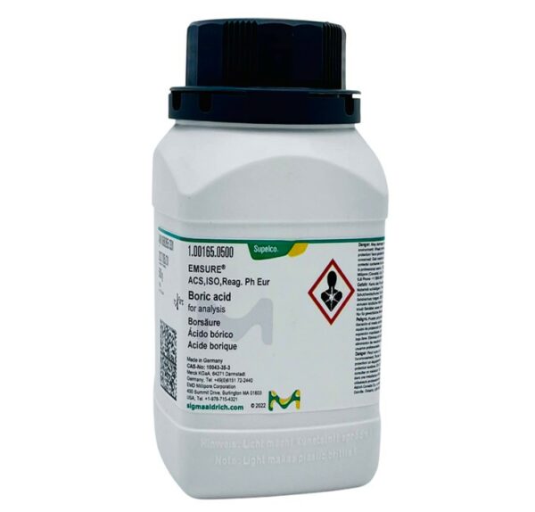 Hóa chất có mã số danh mục 100165 từ Merck là Axit Boric dùng cho phân tích EMSURE® ACS, ISO, Reag. Ph Eur.