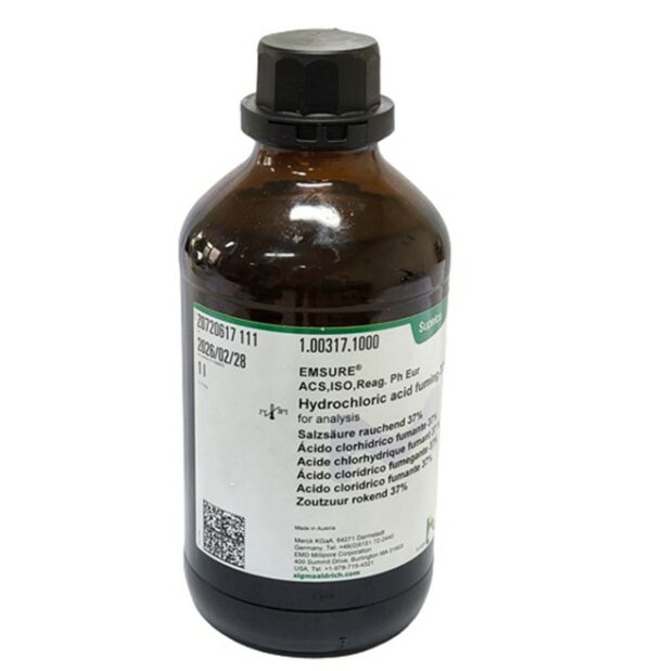 Hóa Chất Hydrochloric Acid Fuming 37% Merck 100317 là Axit clohydric bốc khói 37% của Merck, mã sản phẩm 100317, là dung dịch axit vô cơ đậm đặc, mạnh, được sử dụng rộng rãi trong phòng thí nghiệm và công nghiệp cho nhiều ứng dụng khác nhau.