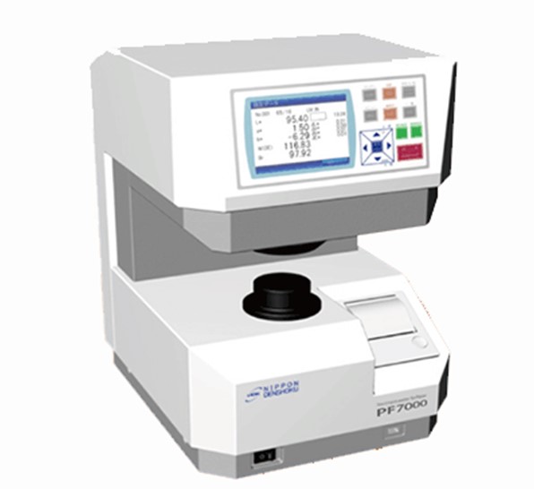 Máy đo màu quang phổ PF 7000 là máy đo độ trắng và độ chênh lệch màu quang phổ dựa trên tiêu chuẩn JIS P8148 và ISO 2470 (Phương pháp đo độ trắng ISO, độ phản xạ ánh sáng xanh khuếch tán cho giấy, bìa cứng và bột giấy) cũng như tiêu chuẩn JIS P8152 và ISO 2469 (Phương pháp đo hệ số phản xạ khuếch tán cho giấy, bìa cứng và bột giấy). Sử dụng model này, có thể đo nhiều chế độ độ trắng, màu sắc, độ chênh lệch màu, cường độ huỳnh quang, v.v. trong dải bước sóng từ 400nm đến 700nm với khoảng cách 10nm. Model PF 7000 này cũng tuân thủ phương pháp đo màu giấy và bìa cứng dưới ánh sáng khuếch tán (JIS P8150 và ISO 5631).