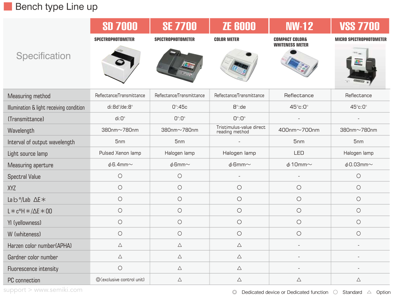 Máy đo màu quang phổ SD 7000 là máy quang phổ có độ chính xác cao cho phép đo màu của mẫu bằng phương pháp phản xạ và truyền qua trong phạm vi bước sóng từ 380nm đến 780nm với khoảng cách 5nm. Đối với các mẫu phản xạ ánh sáng, có thể đo đồng thời SCI (Bao gồm thành phần phản chiếu) và SCE (Loại trừ thành phần phản chiếu), và các mẫu thậm chí bao gồm huỳnh quang có thể được đo nhờ bộ lọc cắt UV được áp dụng. Đối với các mẫu trong suốt, một buồng mẫu lớn loại cửa trượt đã được áp dụng, giúp có thể đo ngay cả một mẫu lớn một cách dễ dàng. Máy đo màu quang phổ SD 7000 sẽ là lựa chọn tối ưu để quản lý màu của nhựa, thủy tinh, vật liệu tinh thể lỏng, màu kim loại, v.v.