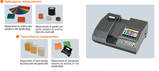 - Có thể đo cả độ phản xạ và truyền qua bằng một thiết bị này. Sử dụng mẫu này, bạn có thể đo màu của nhiều mẫu có hình dạng khác nhau như rắn, lỏng, bột, viên và màng.
