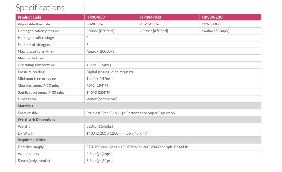 Tính năng & Lợi ích Máy đồng hóa hai cấp áp suất cao HP304 OMVE