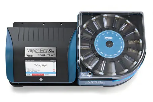 Máy phân tích độ ẩm Computrac Vapor Pro XL của AMETEK Brookfield là một giải pháp thay thế không cần hóa chất cho phương pháp chuẩn độ Karl Fischer truyền thống, cung cấp khả năng phân tích độ ẩm nhanh chóng và chính xác cho nhiều loại vật liệu. Thiết bị này sử dụng công nghệ cảm biến độ ẩm tương đối (RH) để đo hàm lượng nước trong mẫu.