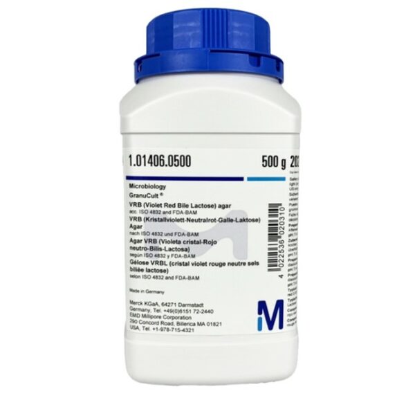Môi Trường Thạch VRB Agar 101406 Merck là Violet Red Bile Lactose (VRB) Agar, một môi trường nuôi cấy chọn lọc và phân biệt dùng để phát hiện và đếm khuẩn lạc vi khuẩn coliform từ thực phẩm, nước và các nguyên liệu khác. Mã sản phẩm 101406 của Merck dùng để chỉ môi trường dạng hạt, giúp hạn chế bụi và an toàn khi sử dụng.