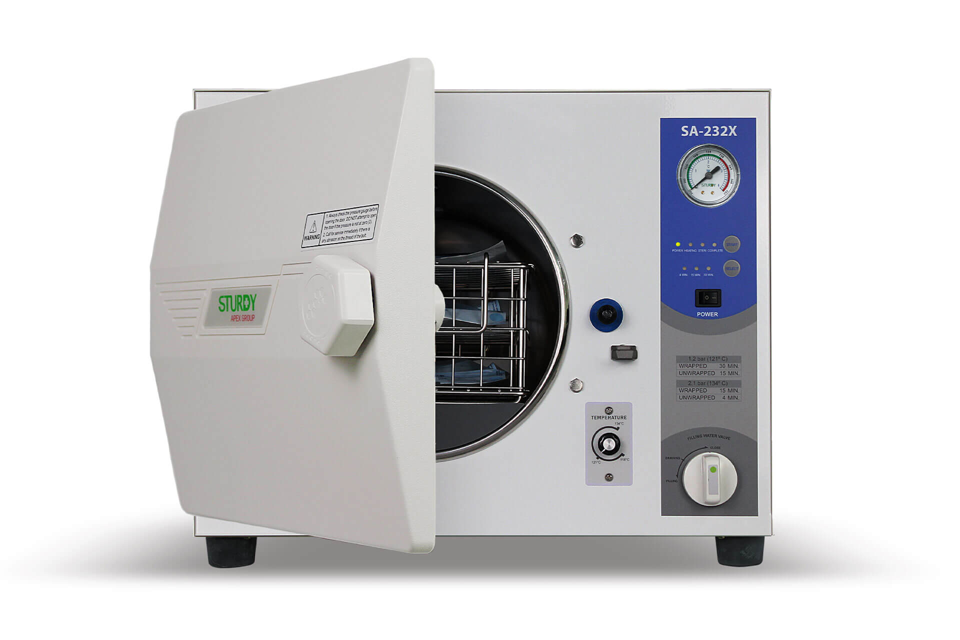 Nồi hấp tiệt trùng Sturdy SA-232X chắc chắn là một thiết bị đáng tin cậy, được điều khiển bằng vi xử lý, có dung tích 16L dùng để tiệt trùng dụng cụ y tế, với các tính năng điều khiển đơn giản, khóa cửa tự động và các tính năng an toàn như bảo vệ quá nhiệt/quá áp, phù hợp cho các vật dụng được bọc/không bọc và chất lỏng ở nhiệt độ 121°C/134°C, tiết kiệm điện năng/nước với màn hình hiển thị kỹ thuật số cơ bản và các phụ kiện tiêu chuẩn.